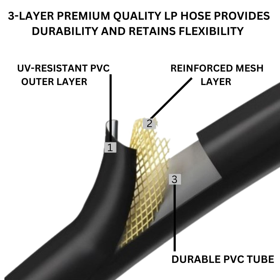 • PREMIUM LOW-PRESSURE PROPANE REGULATOR & HOSE ASSEMBLY – Designed for optimal propane flow and pressure, offering up to 71,400 BTUs.