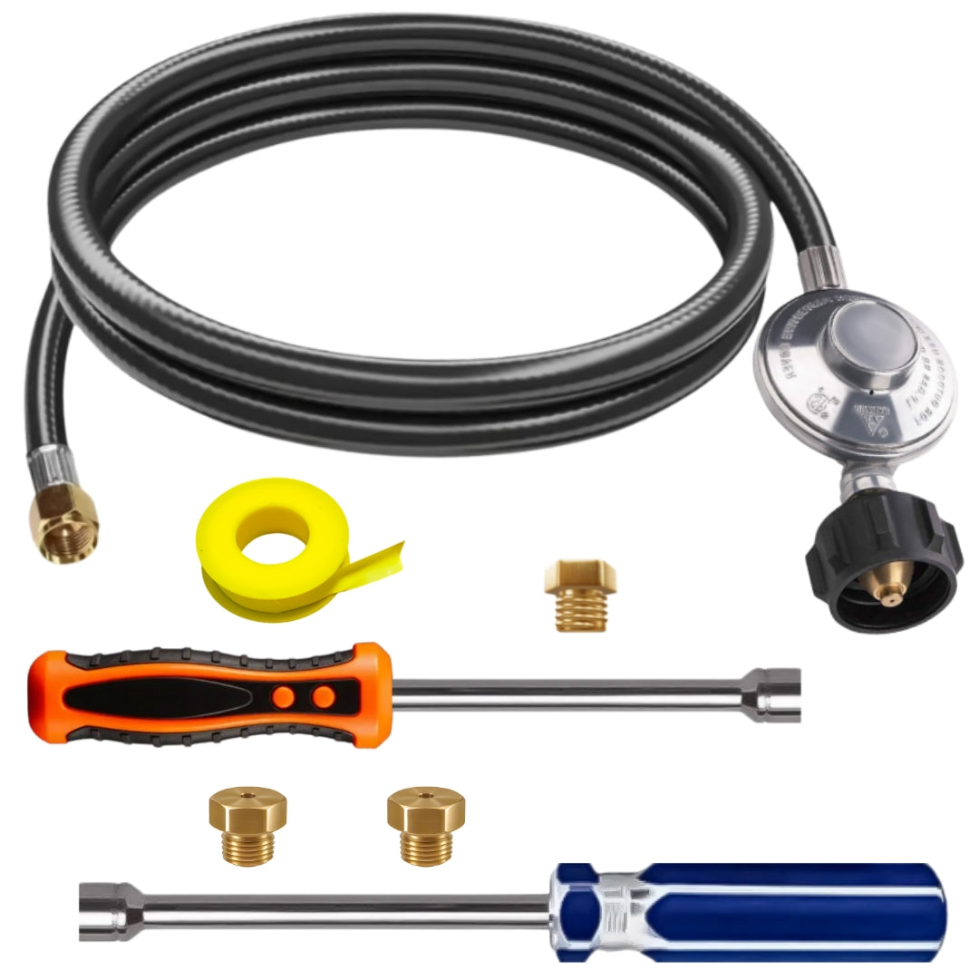 This Product Comes with Complete Detailed Step by Step Instructions, Orifice Removal Tools, and a 5' Low Pressure Propane Regulator/Hose Assembly