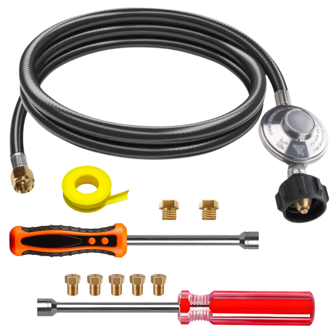 This Product Comes with Complete Detailed Step by Step Instructions, Orifice Removal Tools, and a 5' Low Pressure Propane Regulator/Hose Assembly