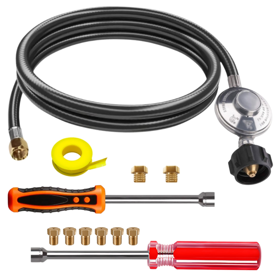 The kit provides great instructions to convert from NG to LP. I'd never done it before and it was easy. Also, the quality of the inserts and the tools provided in the kit were well done.