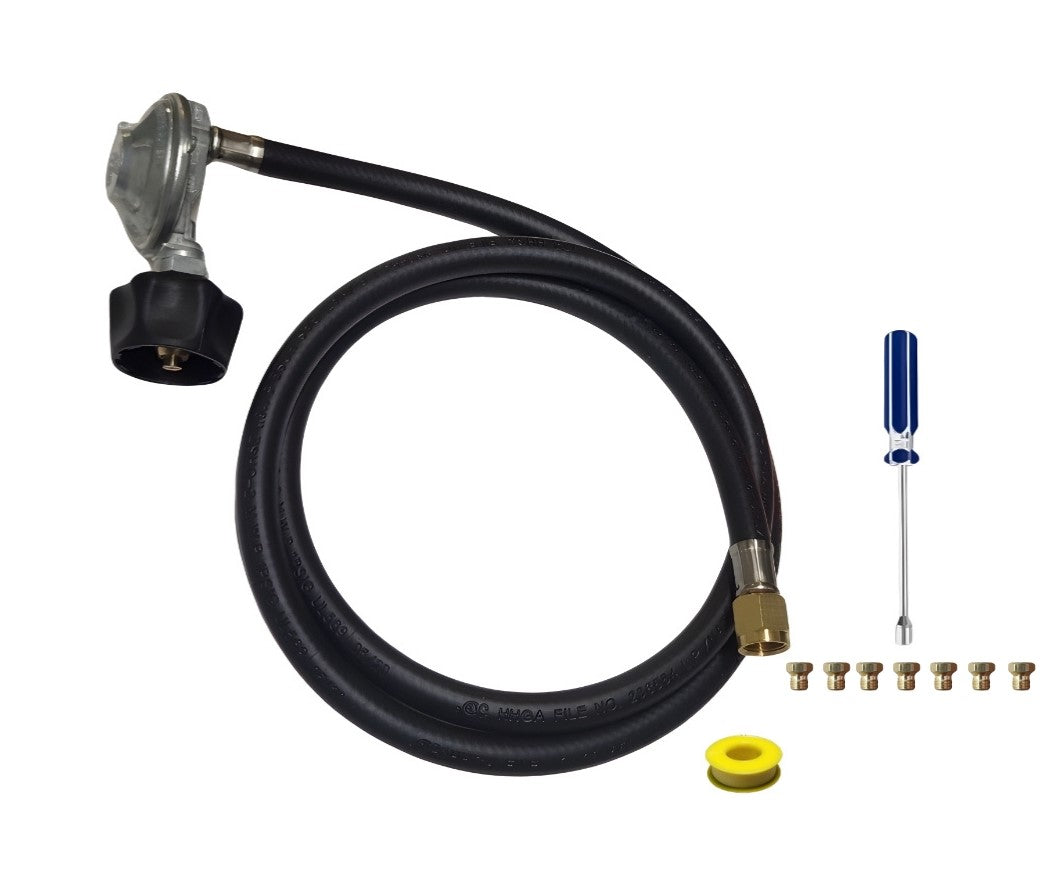 This Product Comes with Complete Detailed Step by Step Instructions, Orifice Removal Tools, and a 5' Low Pressure Propane Regulator/Hose Assembly